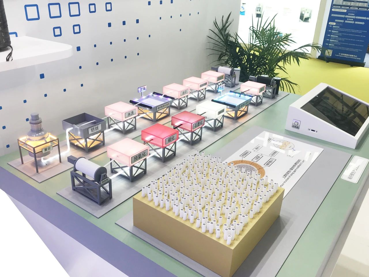 在第十七屆中國(guó)國(guó)際産業(₹yè)用(yòng)紡織品及非織造布展覽會(huì)上(shàng),中紡海(hǎi)天系企業(yè)重點展出了(le)碳纖維生(shēng)産•工(gōng)藝及應用(yòng)場(chǎng)景沙盤模型,動态模拟了(le)碳纖維生(shēng")産從(cóng)原材料到(dào)成品絲束的(de)加工(gōng)工(gōng)藝及生(shēng)産工(gōng)<序,重點突出了(le)與企業(yè)産品碳纖維助劑相(xiàng)關的(de)上(shàng)油和(hé)上(shàng)漿工α(gōng)序以及作(zuò)用(yòng)和(hé)效果。